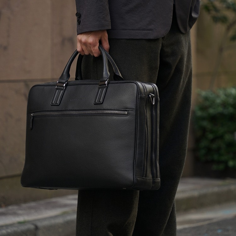 日本製ならではの丁寧な作りと、細部までこだわり抜いたディテールが魅力のブリーフバッグです。ビジネスパーソンの品格を引き立てる、上質な相棒として最適な一品。