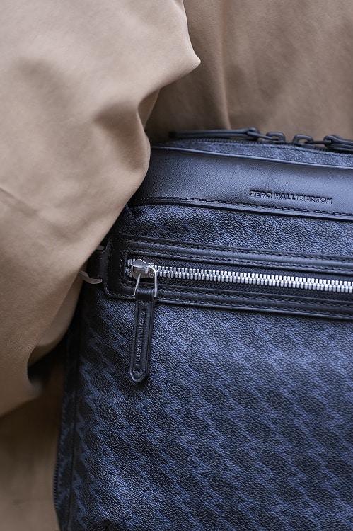 ZERO HALLIBURTON「ZH」柄のモノグラムプリントPVCをメインに、上質な牛革を随所に使用。