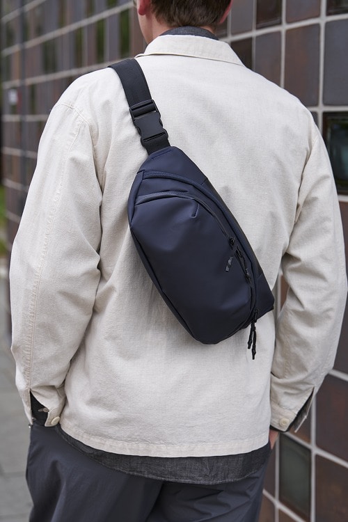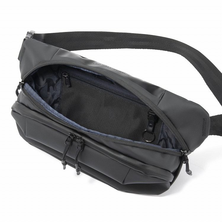 本体にはポリエステルにPVC加工を施した雨や汚れに強い生地を採用し、ON/OFFの様々なシーンでの使用に適している。