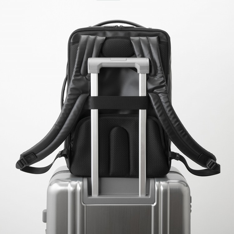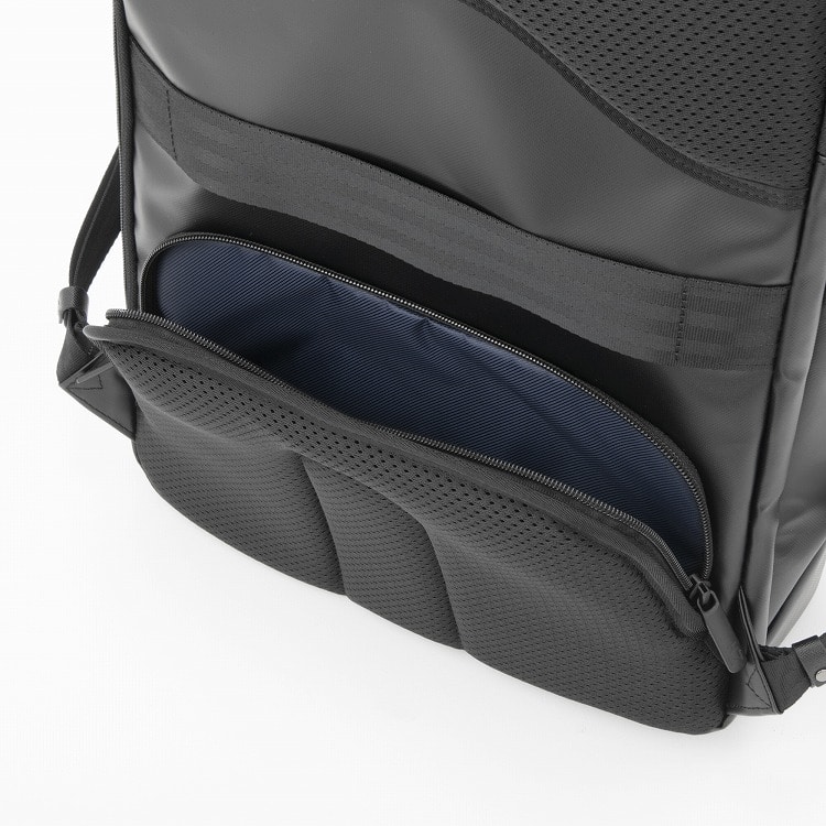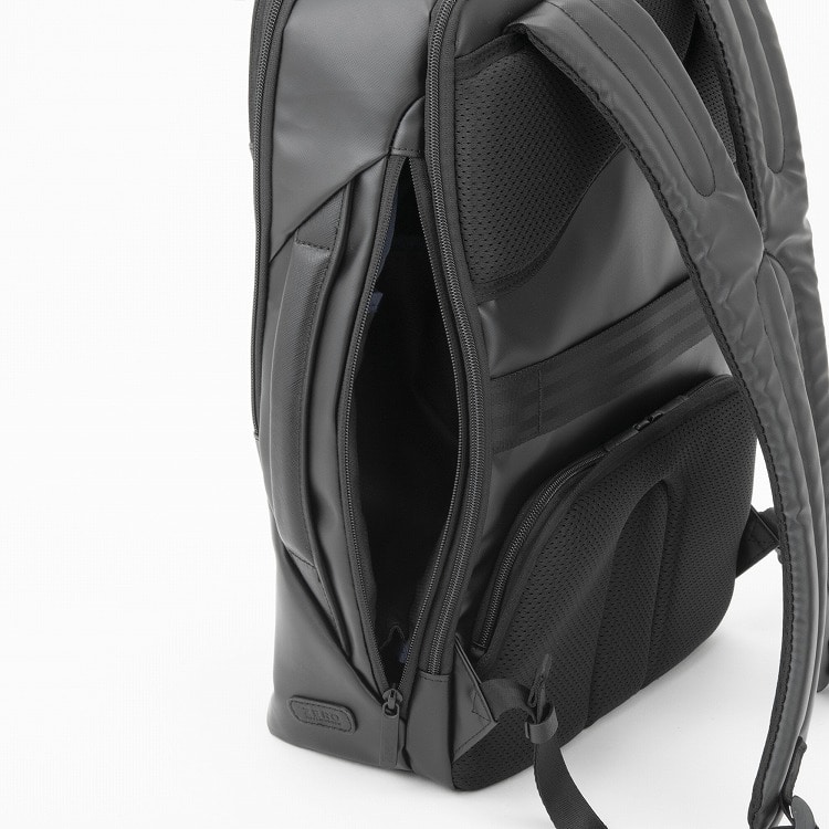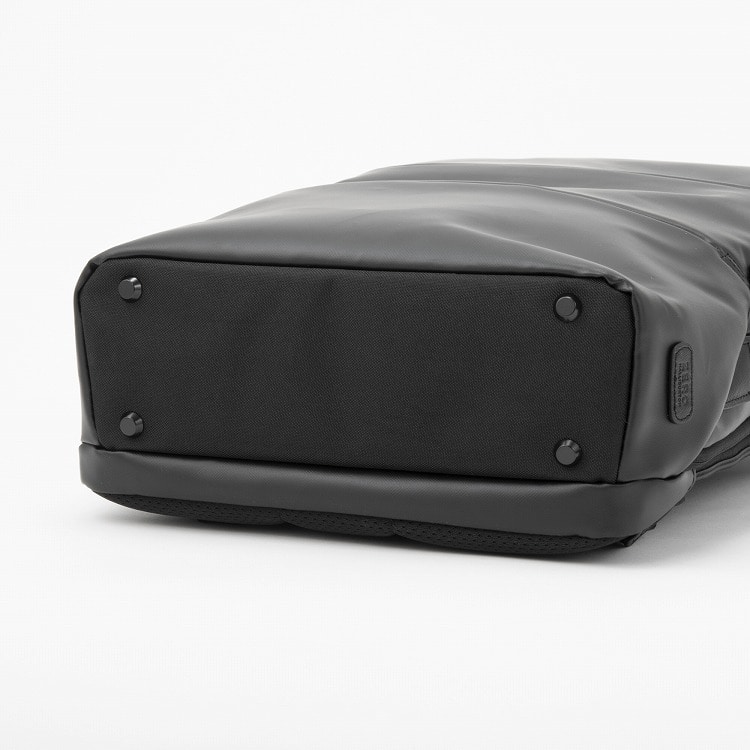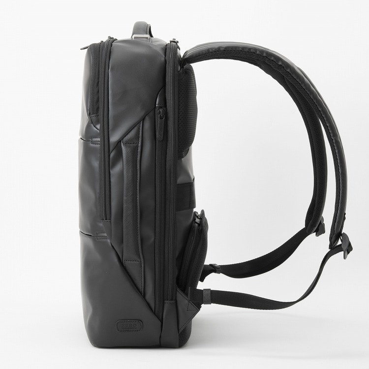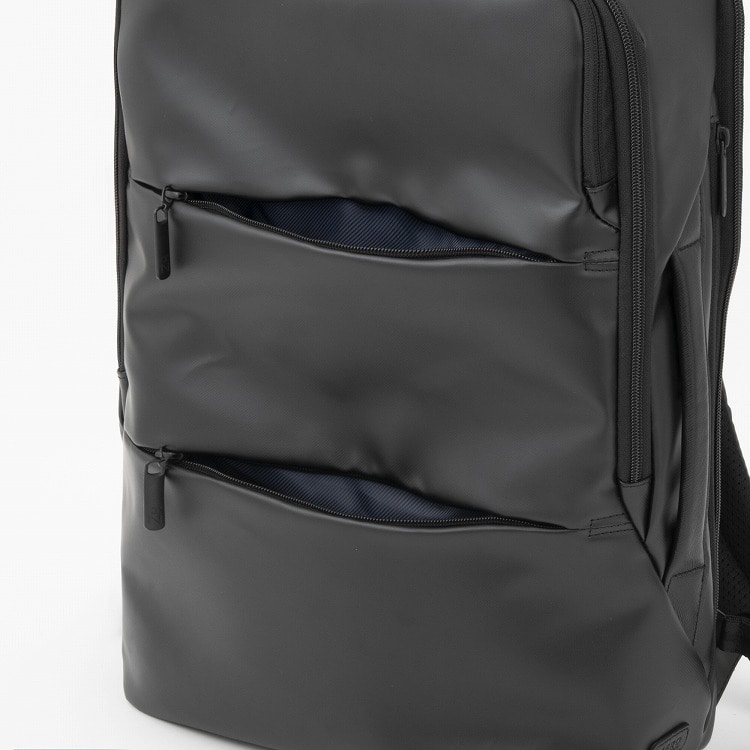 シンプルでスタイリッシュなデザインに、快適な使い心地を追求した機能を搭載。耐久性と撥水性に優れた〈ポリエステル600dnオックス(表PVC加工)〉を主素材に、上質な〈牛革〉を副素材に取り入れることで、上品さと実用性を兼備しました。さまざまなシーンで活躍するこのリュックは、ビジネスパーソンの理想のパートナーです。
