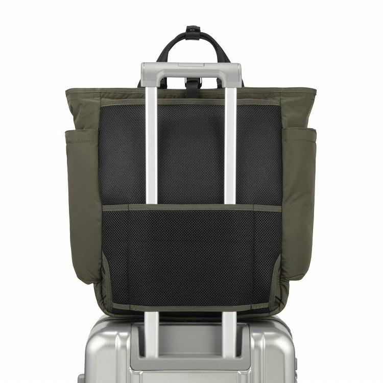 さらに、背面メッシュ部にはスーツケースへのセットアップ機能を搭載。大容量であることから、旅行の際のサブバッグとしても頼れる存在です。