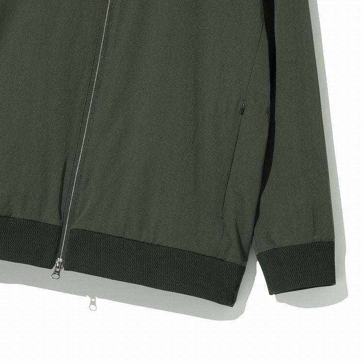シンプルなシルエットに、メタリックなファスナーとロゴのディテールを効かせることで、装いに洗練された存在感を添えます。単品での着用はもちろん、同素材のパンツとのセットアップで一層スタイリッシュに。
