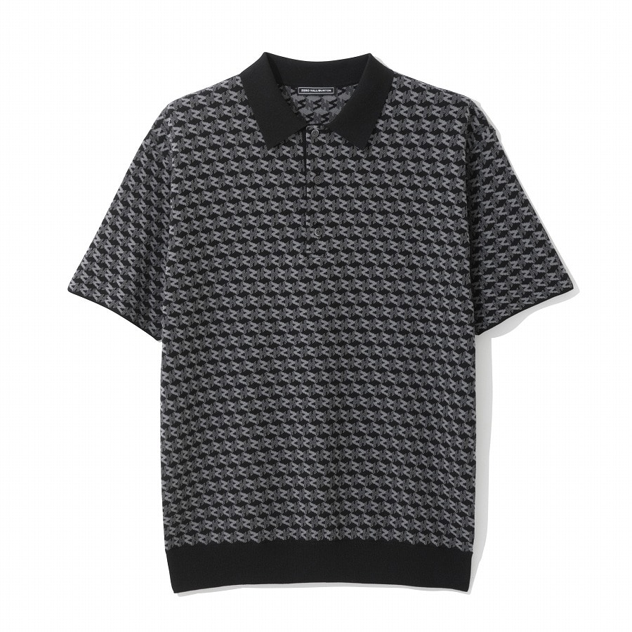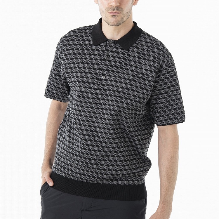 - > 【ゼロハリバートン】 ZHG-M5A4d | Short-Sleeved Monogram Knit Polo ゴルフウェア モノグラム柄ニットポロシャツ 秋冬 メンズ 85116