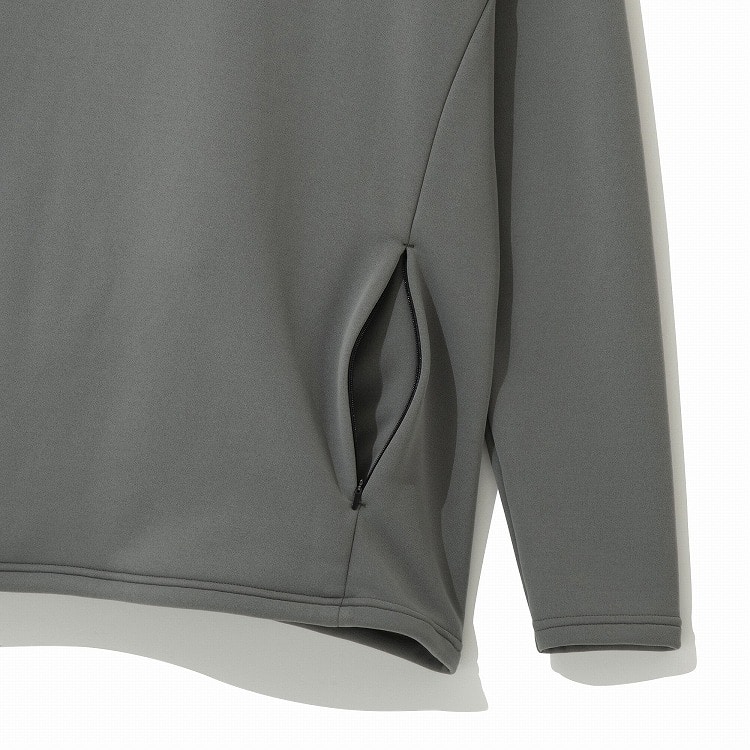 優れた保温性を持ちながら驚くほど軽量で、ゴルフの練習着やタウンユースまで幅広く活躍します。シンプルなデザインは異素材とのコーディネートはもちろん、同素材のボトムスとのセットアップでもスタイリッシュに着こなせます。