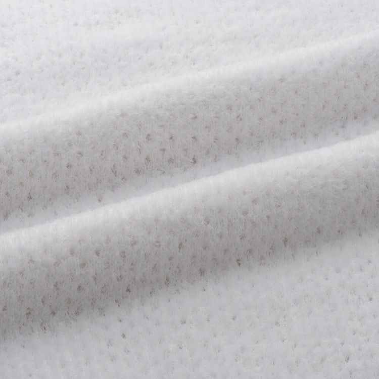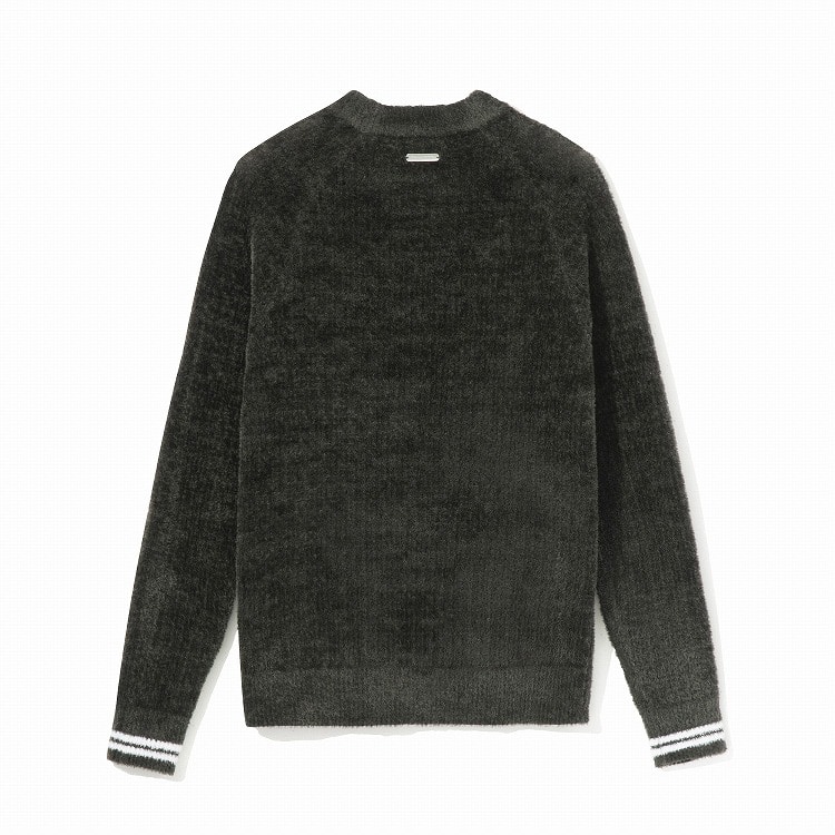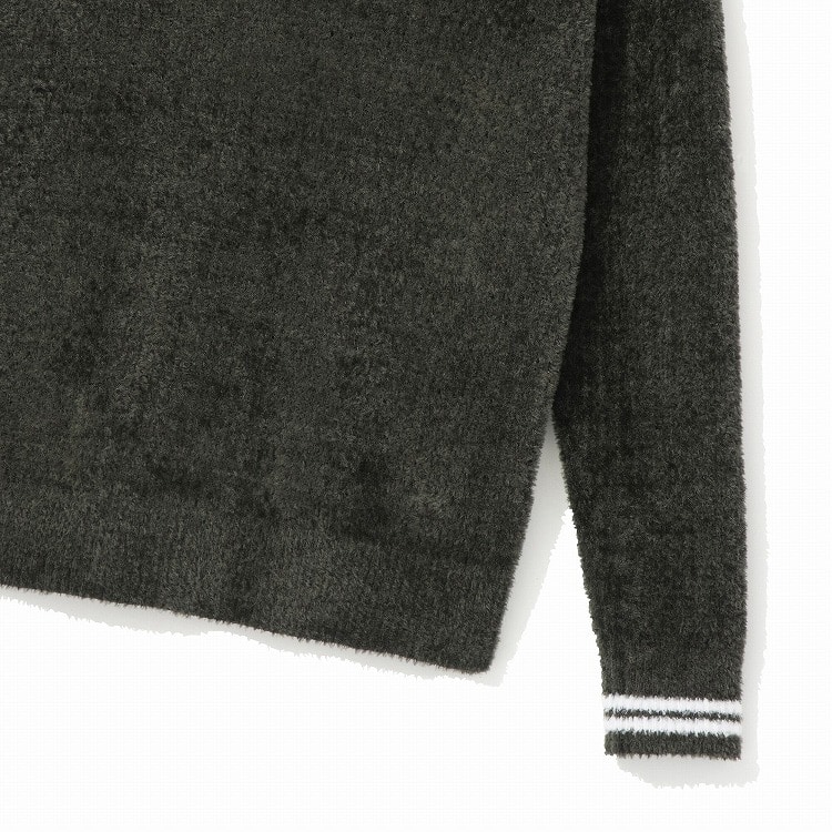 中空異形断面糸「Octa」を芯糸に巻き付けたフェザーヤーンを採用し、軽やかで暖かい着心地を実現。着回ししやすいシンプルなデザインながら、メタリックロゴパーツと袖のダブルリブラインがコーディネートのアクセントに。糸抜けしにくい組織で、家庭での手軽な洗濯も可能です。