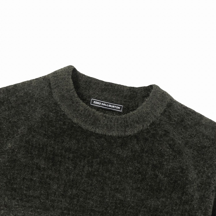 軽量で保温性に優れたフェザーヤーンのクルーネックニット。