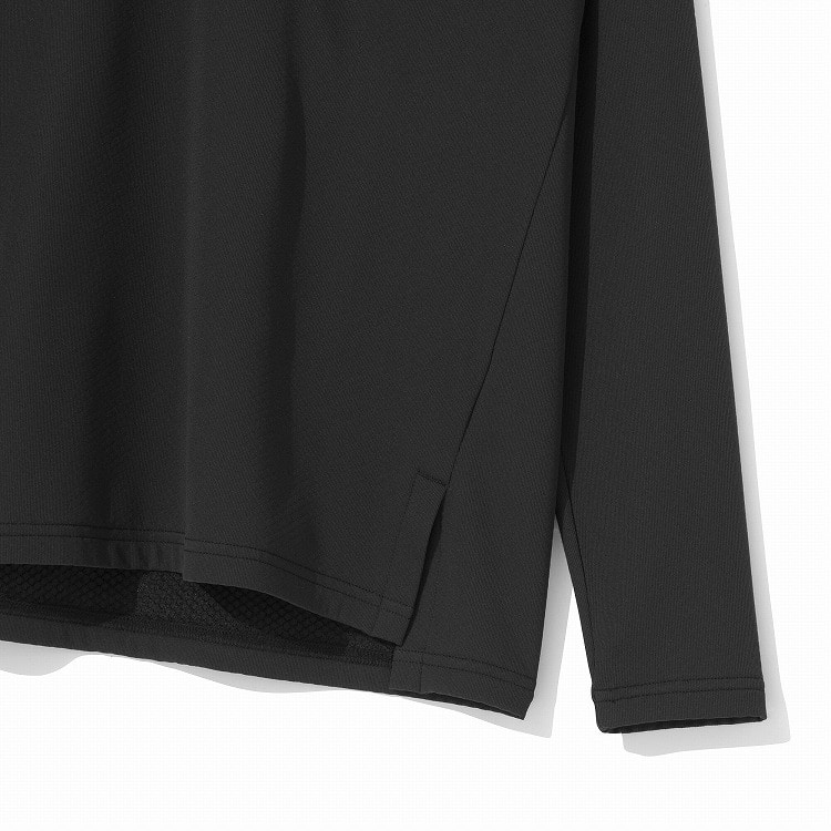 肌面起毛素材を使用し、中空異形断面糸「Octa」の吸水速乾性で肌面を快適に保ちます。シンプルなデザインながら、メタリックロゴ使いと背面のインパクトあるロゴプリントがコーディネートを引き立てます。