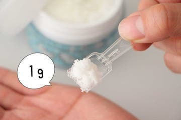 【使用方法】 濡らした手のひらに本品をとり、両手に粒がなくなるまで溶 かします(ペースト状になるまで)。