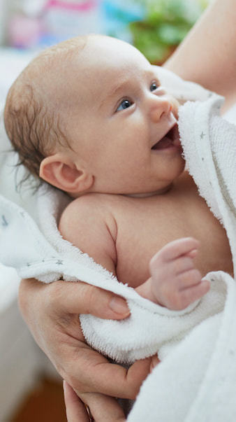 「気持ちいいね」と笑顔とともに話しかけながら洗ってあげることで、より赤ちゃんに愛情が伝わり、良い親子関係が築けるようになります。