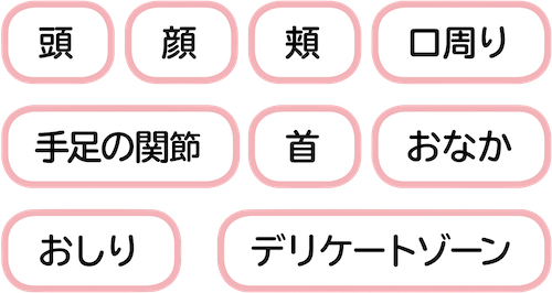 ③ 頭から足の先まで数回に分けて優しくなでなで。
