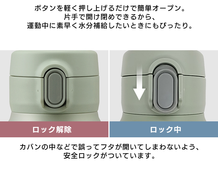 片手で開け閉めできるから、運動中に素早く水分補給したいときにもぴったり。