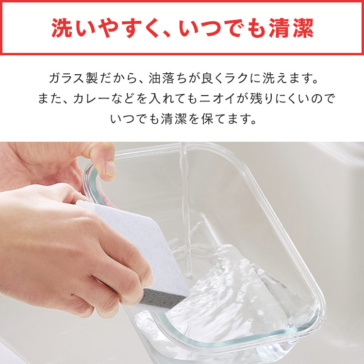 また、カレーなどを入れてもニオイが残りにくいのでいつでも清潔を保てます。