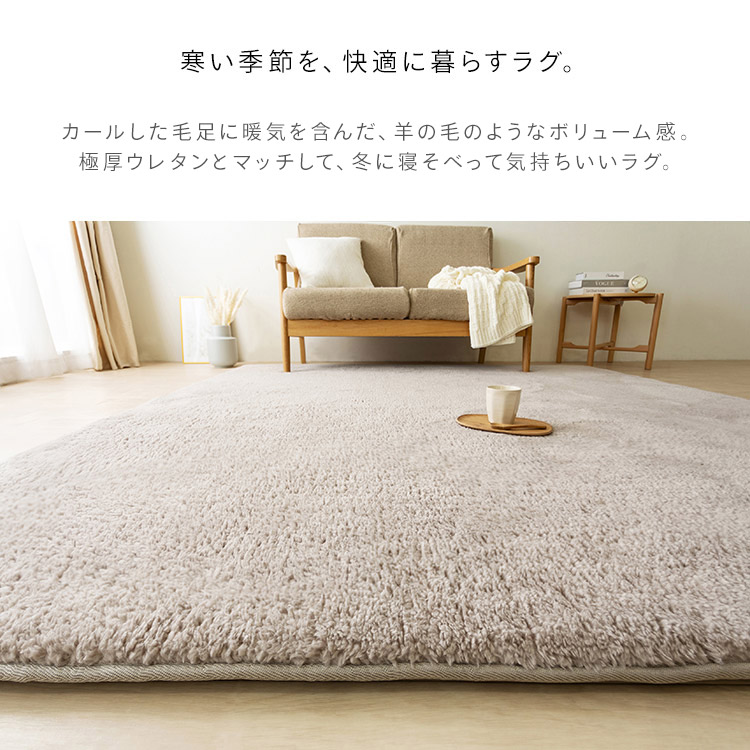 厚さ3cmと寝転がっても気持ちいい厚さのラグ。