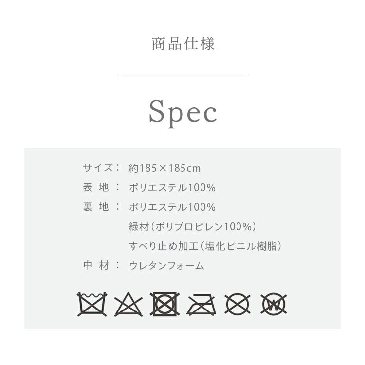 強力すべり止め加工でフローリングに敷いてもラグがズレるのを防ぎます。