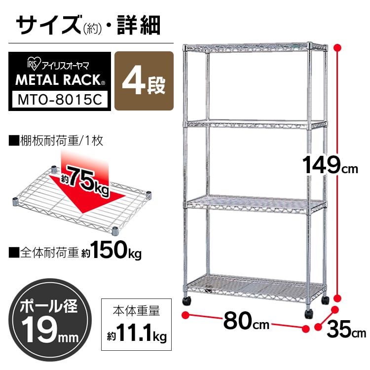 [幅80cm]メタルミニ(ポール直径19mm・棚板4枚) MTO-8015C
