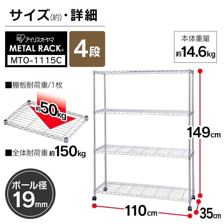 [幅110cm]メタルミニ(ポール直径19mm・棚板4枚) MTO-1115C