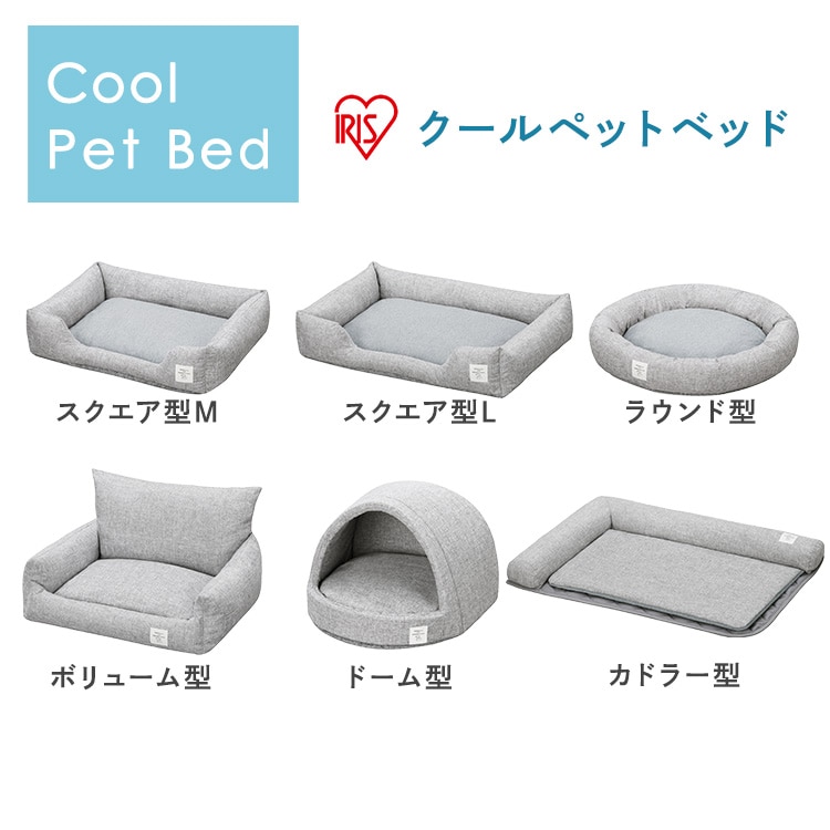 カドラー型、ボリューム型、ドーム型のクッションはソファー生地/接触冷感生地のリバーシブル仕様で、通年で使用可能。