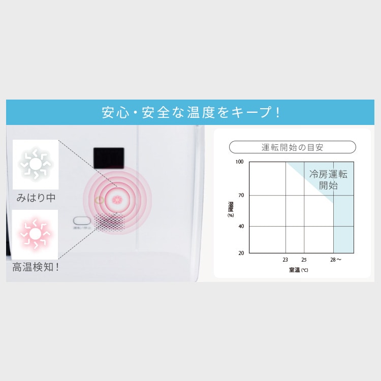 お部屋が危険な温度にならないようキープするため、子供のお留守番時・ペットとお住まいの方・暑さに弱いご家族にもおすすめ。