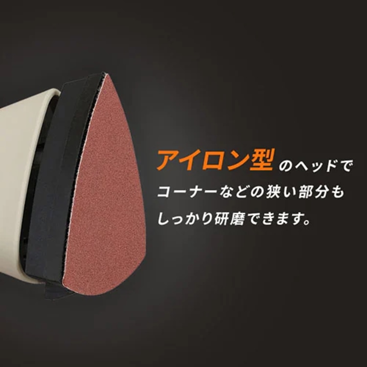 アイロン型のヘッドでコーナーなどの狭い部分もしっかり研磨できます。