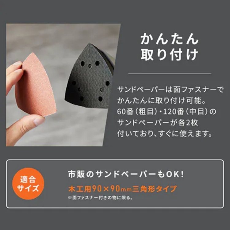 サンドペーパーは面ファスナーでかんたんに取り付け可能。