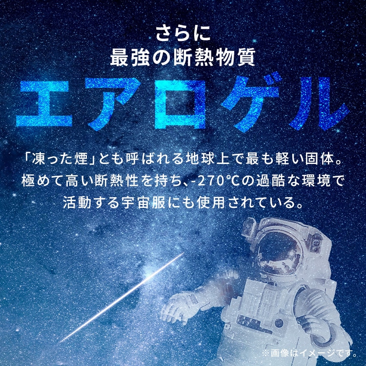 多孔質できわめて高い断熱性を持ち、-270℃の過酷な環境で活動する宇宙服にも使用される。