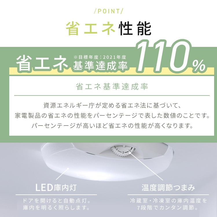 ※1:定格内容積は、日本産業規格(JIS C 9801-3:2015)に基づき、庫内の温度制御に必要でない部品(ケースなど)を外した状態で算出しています。