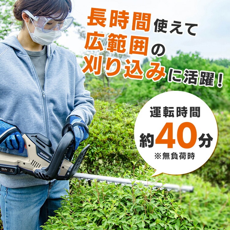 長時間(※)使えて、広範囲の刈り込みにおすすめなヘッジトリマーです。