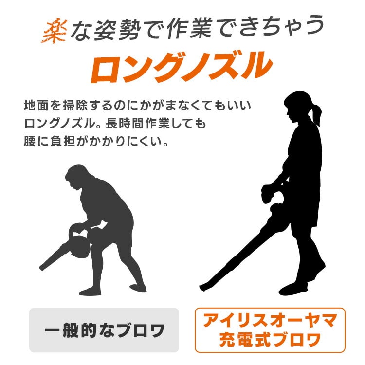 ロングノズルなので作業時にかがむことなく、楽な姿勢をとりやすいです。