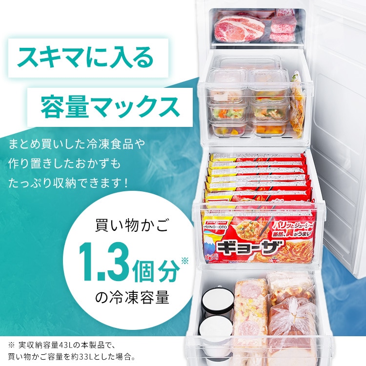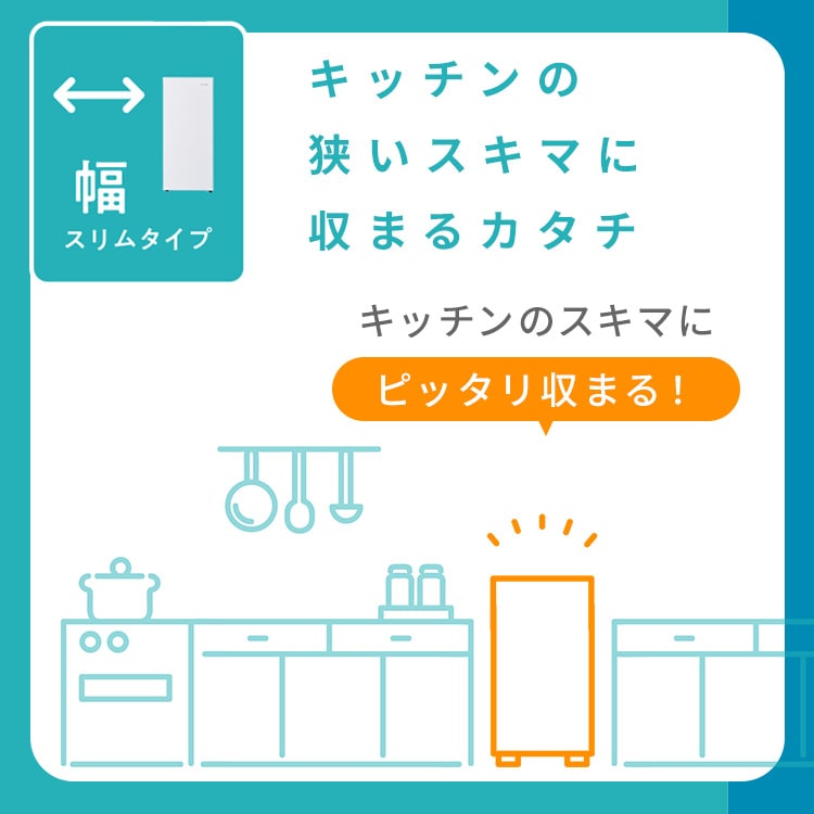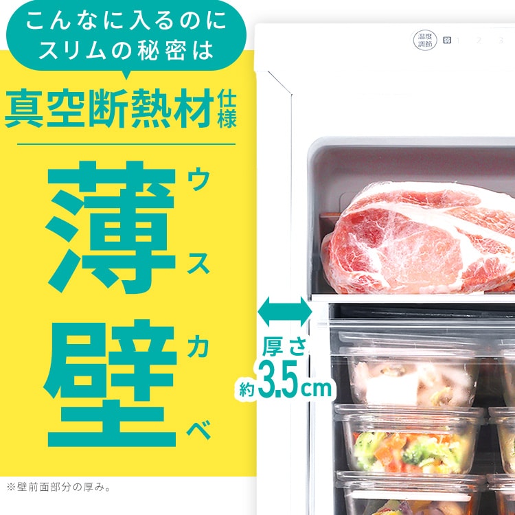 狭いスペースでも置きやすいセカンド冷凍庫です。