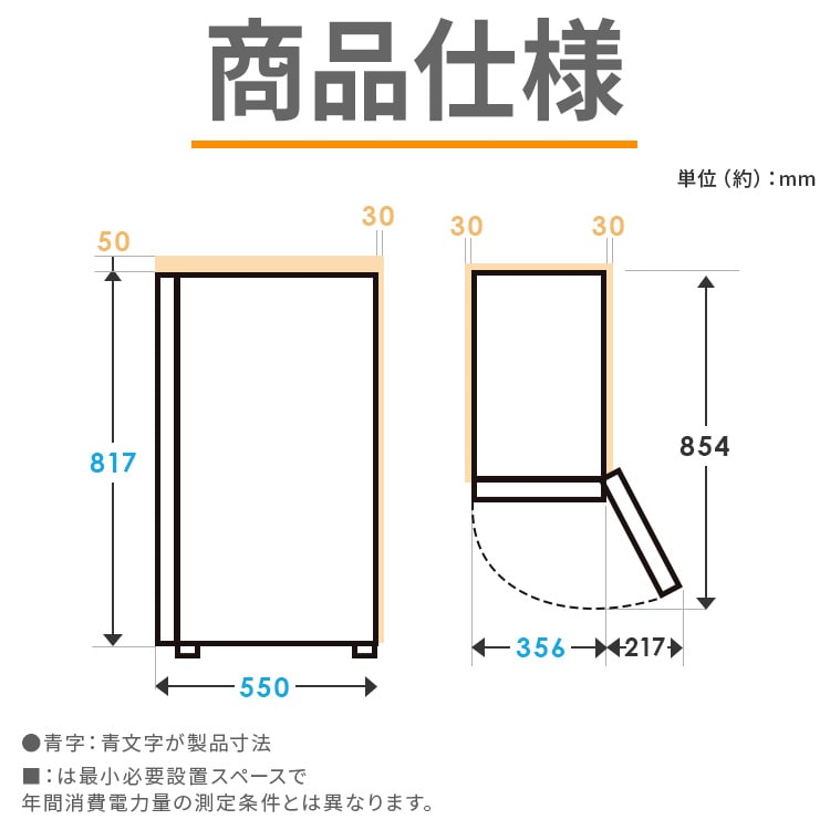 ※1 定格内容積は、日本産業規格(JIS C 9801-3:2015)に基づき、庫内の温度制御に必要でない部品(ケースなど)を外した状態で算出しています。