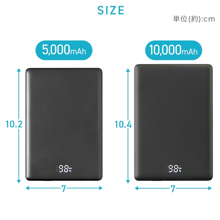 本製品【10000mAh】:幅約7×高さ約10.4cm