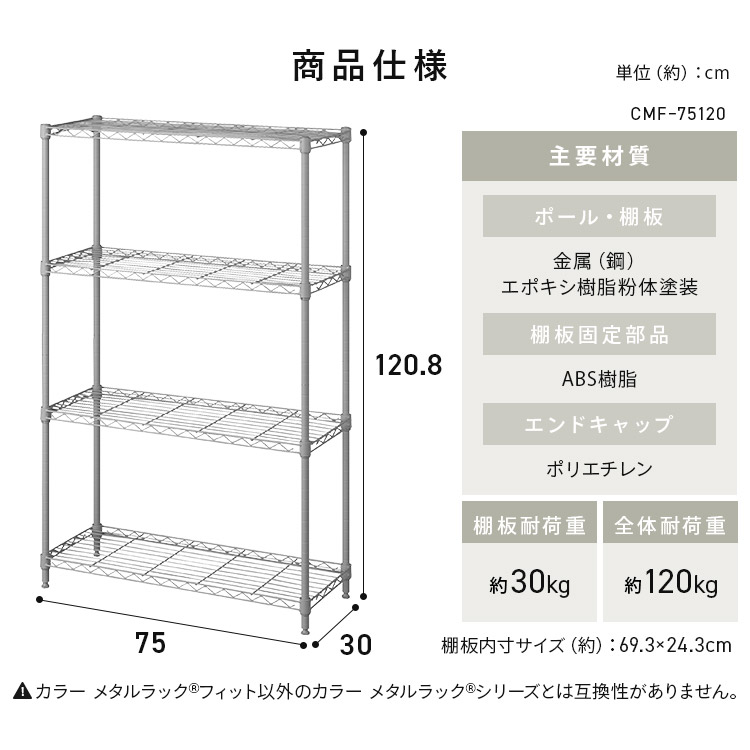 ![[公式]ラック スチールラック メタルラック 幅75 奥行30 アイリスオーヤマ CMFー75120 マットホワイト](/img/0119/goods/D4/0119-111165.jpg)