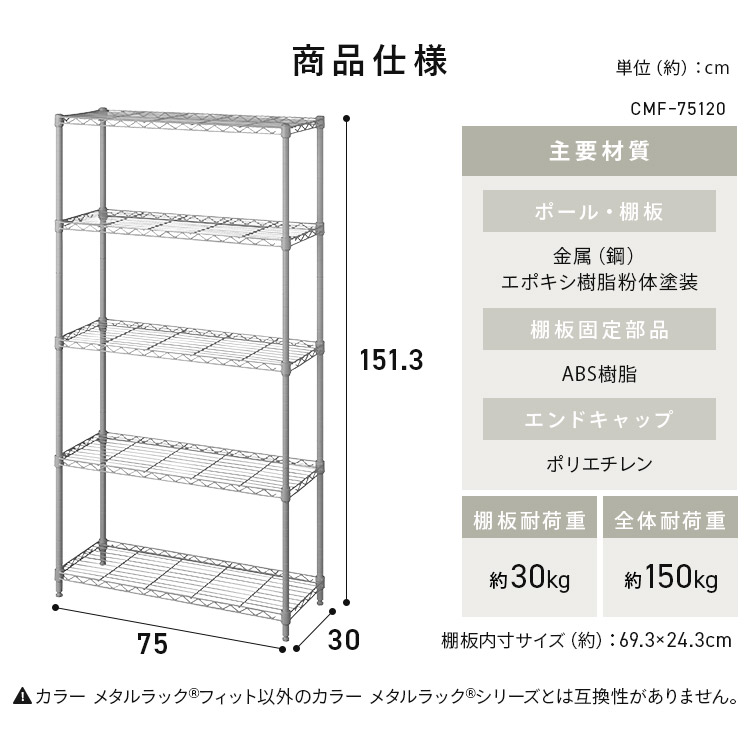 ![[公式]ラック スチールラック メタルラック 幅75 奥行30 アイリスオーヤマ CMFー75150 マットホワイト](/img/0119/goods/D5/0119-111207.jpg)