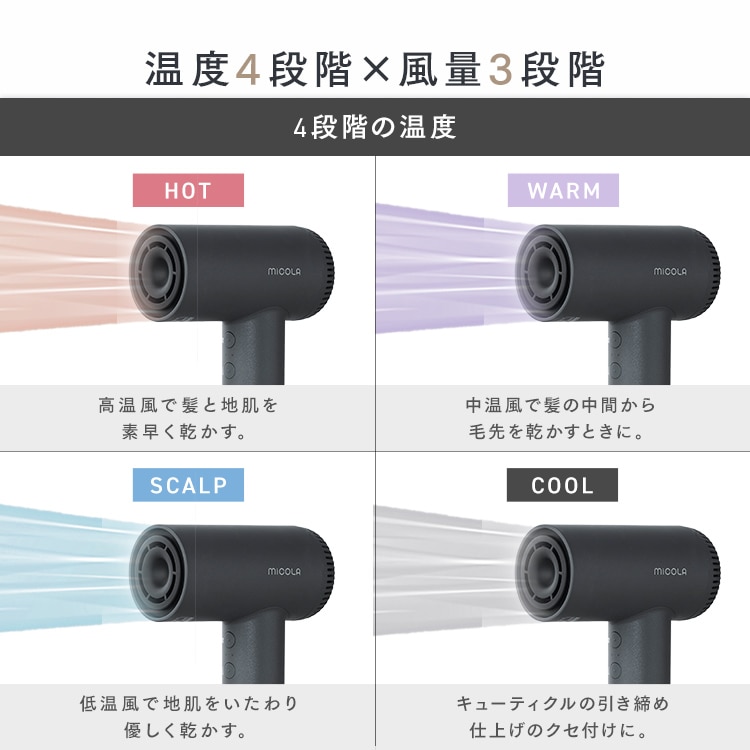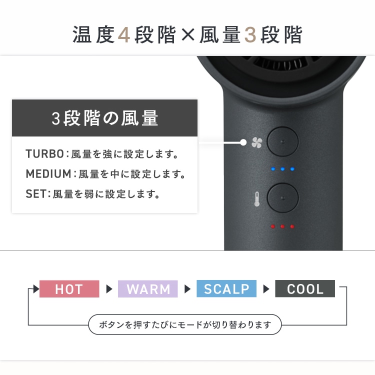 ◆3段階の風量×3段階の温度、9通りのスタイルをカスタマイズ