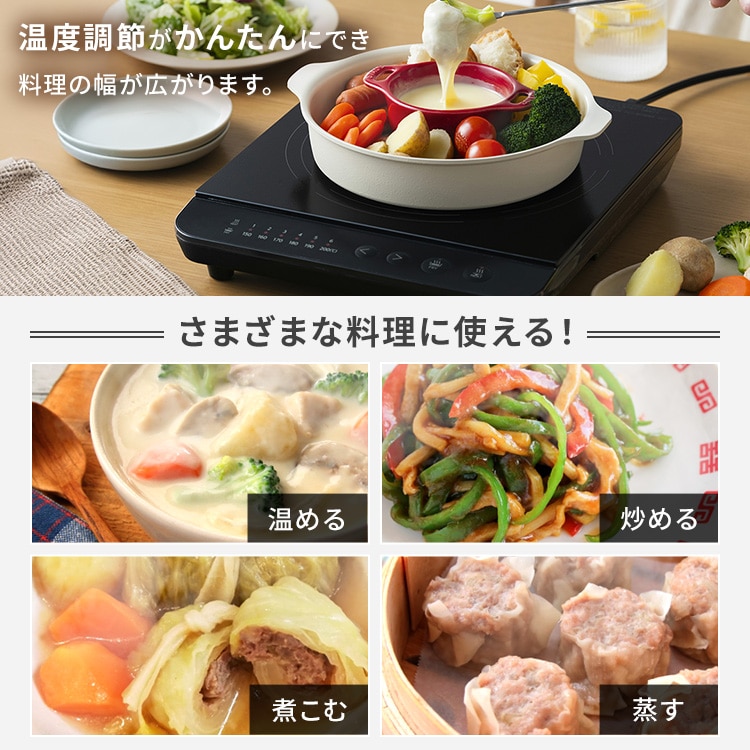 加熱料理から揚げ物まで多用途に使える簡単・便利なIHコンロです。