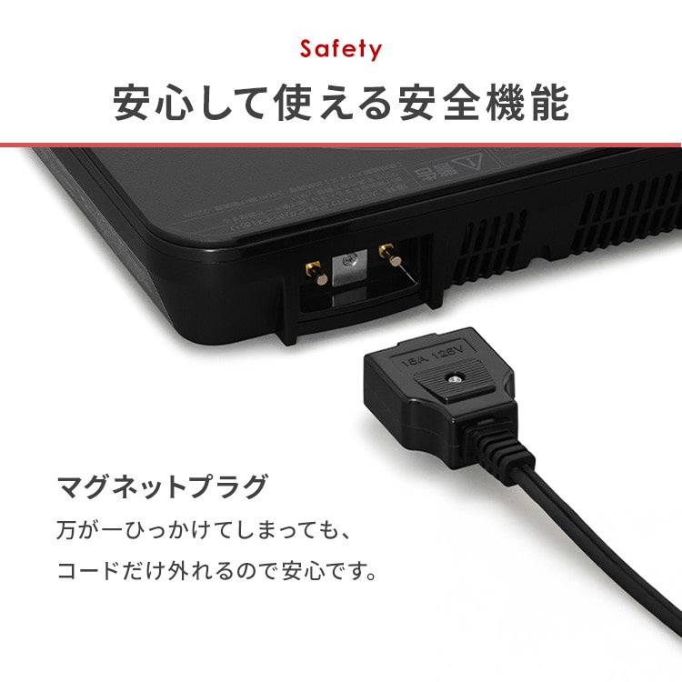 コードに足や手を引っ掛けてもコードだけ外れるマグネットコードを採用しています。
