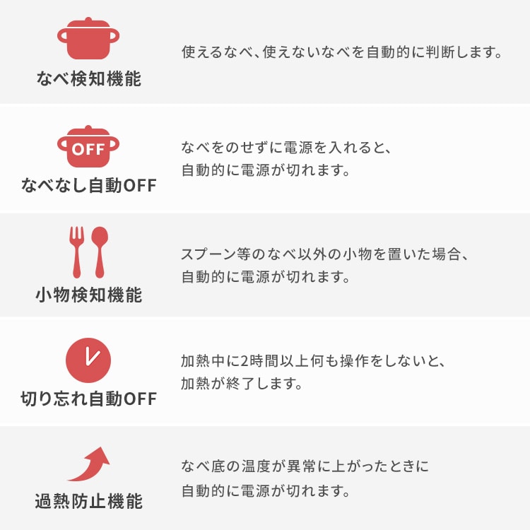 ◆なべ検知機能/なべなし検知機能/小物検知機能