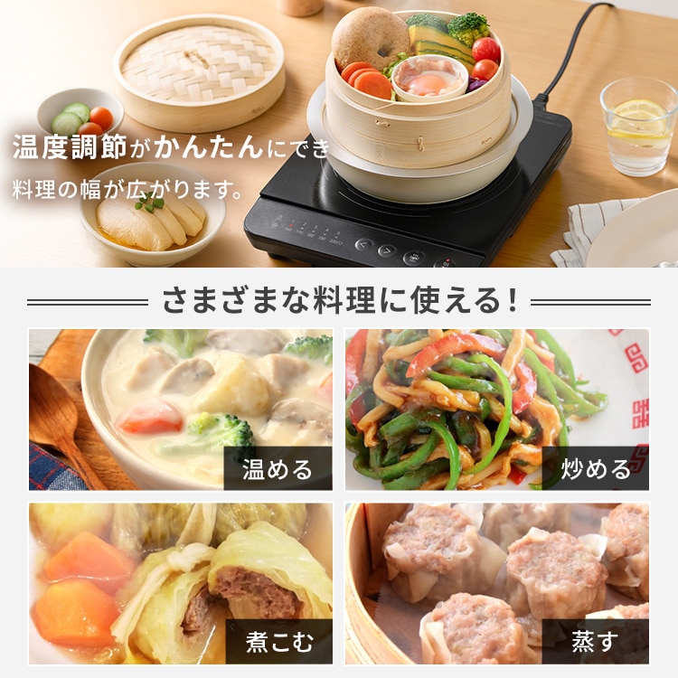 加熱料理から揚げ物まで多用途に使える簡単・便利なIHコンロです。