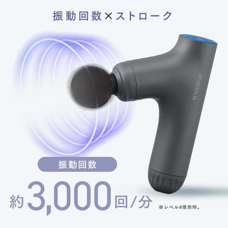 最大振動回数約3000回/分。※レベル4使用時。