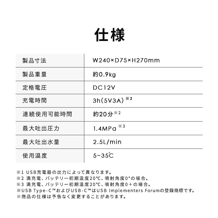 コードレスでどこでも使える、充電式ハンディウォッシャーです。