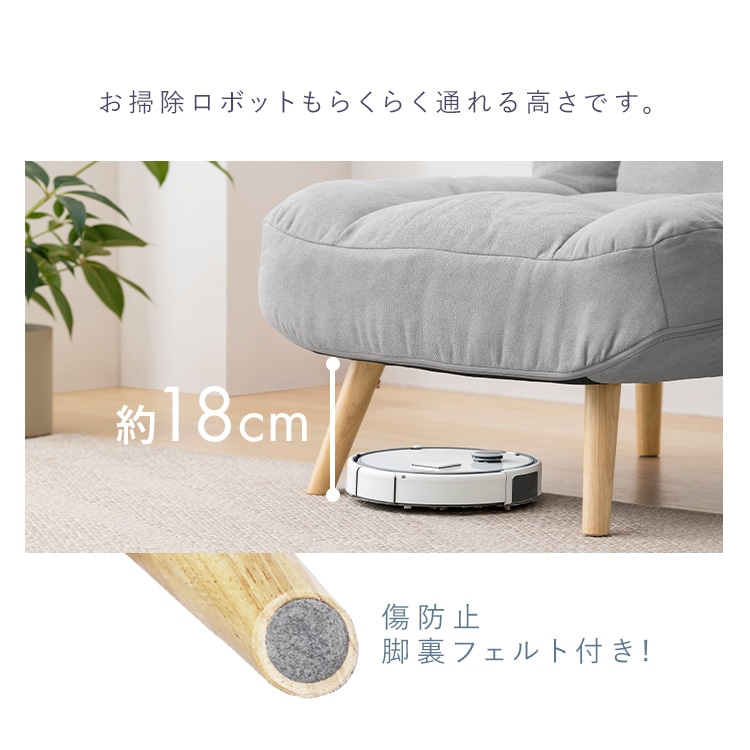 ・脚付き:すっきりとした印象を演出し、立ち上がり⇔座りやすく、お掃除ロボットもらくらく通れる高さになります。
