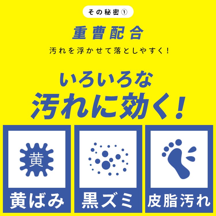 黄ばみ・黒ズミ・水あかといったいろいろな汚れに効く。