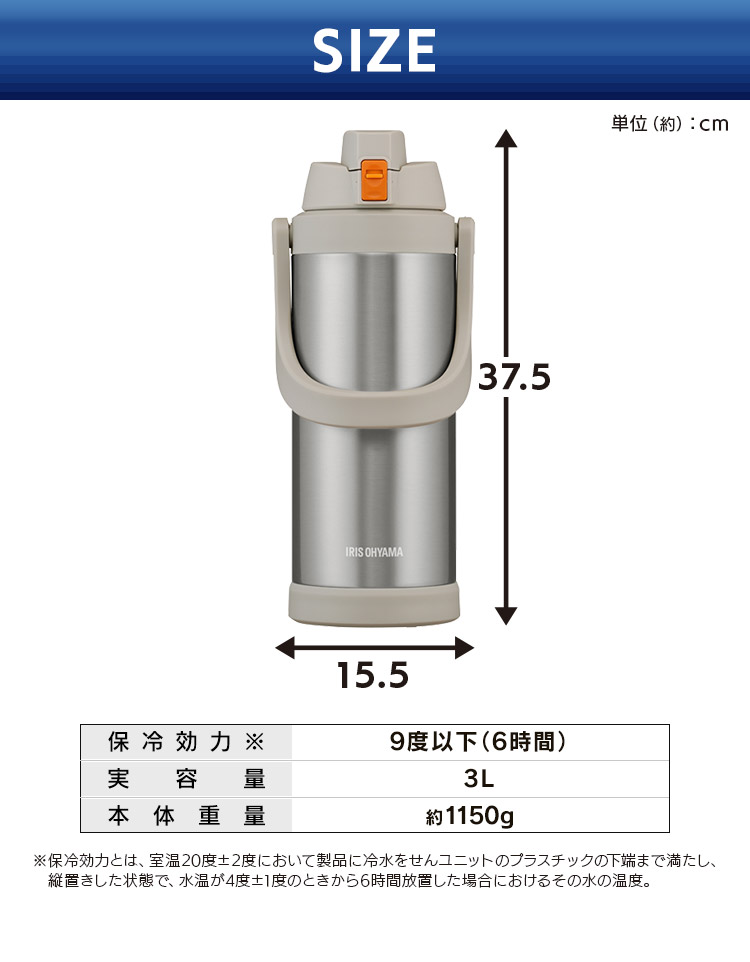 真空断熱構造のため、冷たさを保ち、たっぷりの飲み物を保冷できます。