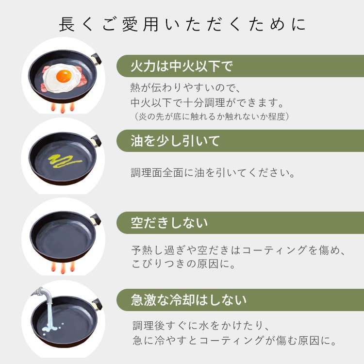 フッ素コーティングを施しているため、汚れがこびりつきにくいです。