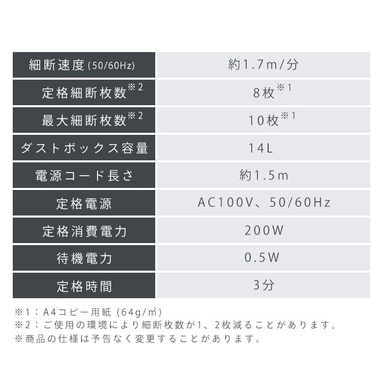 ●最大細断枚数(A4コピー用紙(64g/m2))