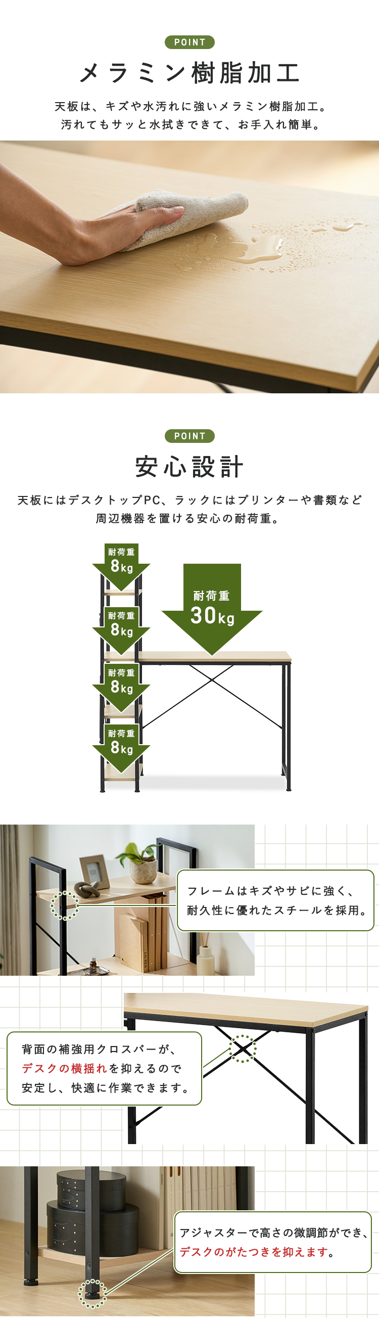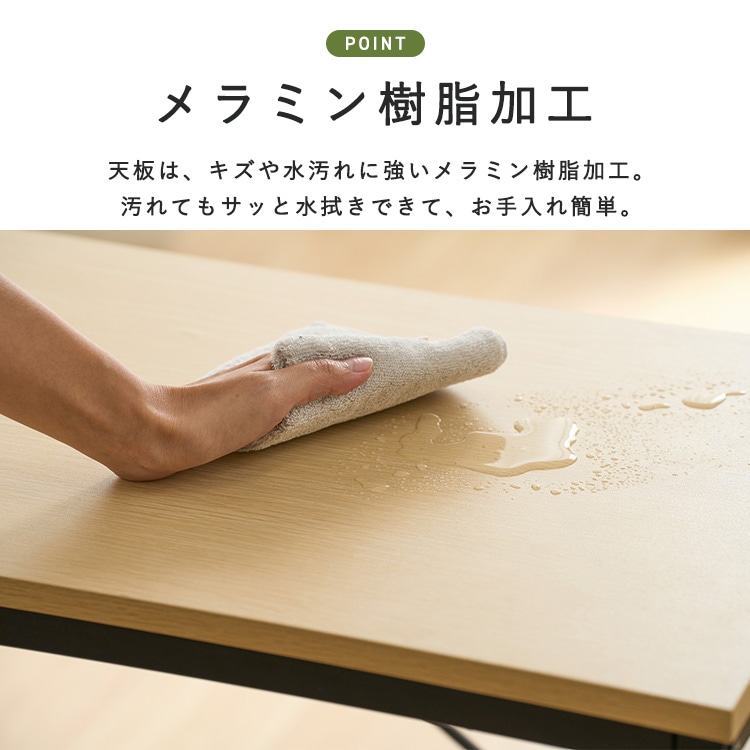 天板は熱、水、傷に強いメラミン樹脂を使用しています。