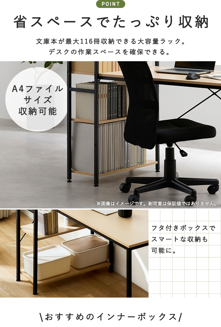 文庫本なら116冊(1段あたり29冊)収納できます。