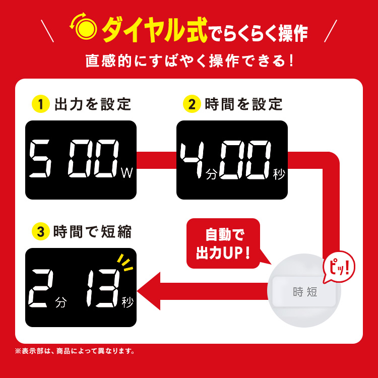 ※1 高周波出力900Wは短時間高出力機能(3分)であり、調理中に自動的に600Wに切り替わります。