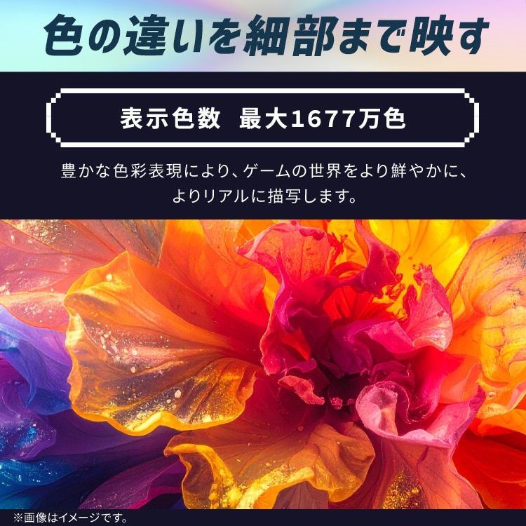 豊かな色彩表現により、色の違いを細部までしっかり映し出し、ゲームの世界をより鮮やかに・よりリアルに描写します。