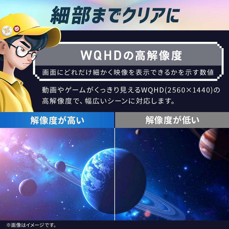 細部までクリアに見える高解像度[WQHD(2560×1440)]です。